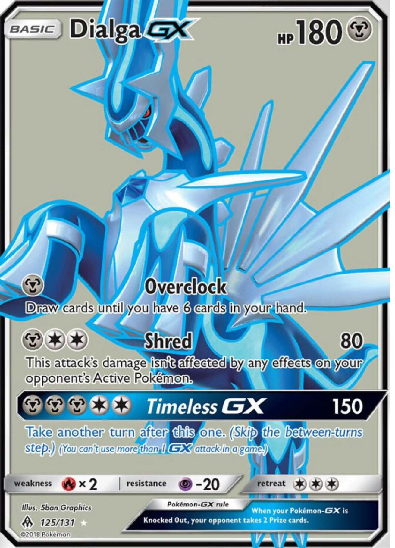 Dialga-GX beeindruckt mit seiner Fähigkeit, durch GX-Attacken sogar einen zusätzlichen Zug zu ermöglichen – ein Gamechanger, der klug eingesetzt den Verlauf eines Matches komplett drehen kann. Seine Rolle als Zeit-Pokémon spiegelt sich auch spielmechanisch in seiner Kontrolle über den Spielfluss wider.