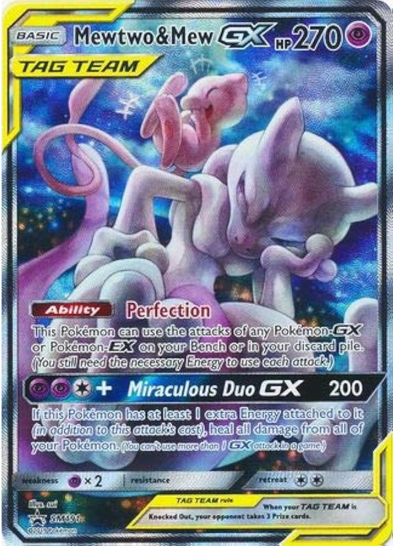 Mewtu & Mew-GX Typ: Psycho Besondere Stärke: Extreme Vielseitigkeit, kopiert Attacken anderer GX-/EX-Pokémon Fähigkeit: Perfekte Synchronisation – Zugriff auf Ablagestapel-Attacken Einsatzgebiet: Zentrale Karte in vielen Turnierdecks; anpassbar an viele Strategien Schwäche: Anfällig für Effekte gegen Tag-Team-Pokémon Design: Zwei Fanlieblinge in einem – stilvoll, dynamisch und strategisch überlegen